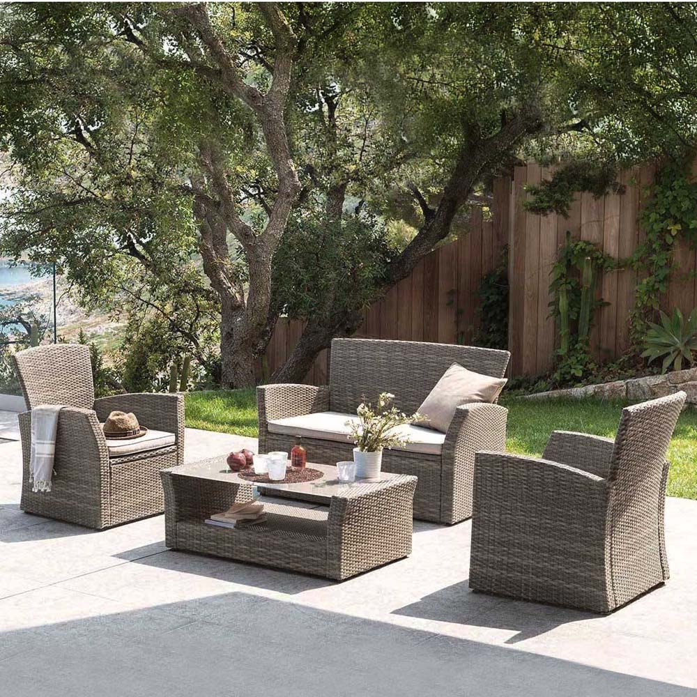 Коричневый ротанг, серые подушки